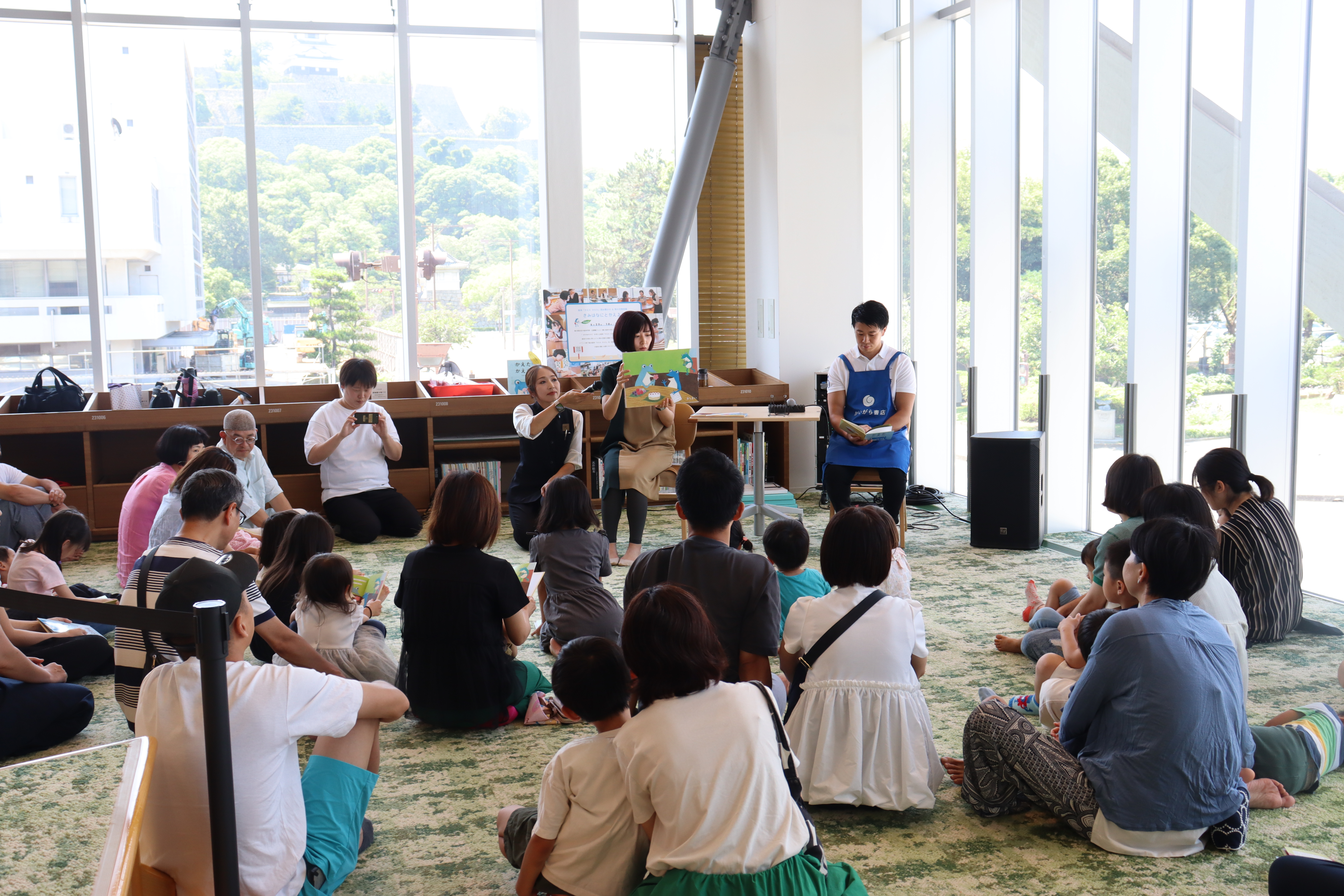 丸亀市市民交流活動センターマルタスにて原画展を開催していただきました。読み聞かせイベントとサイン会を開催させていただきました。大きなスクリーンに投影して子ども達も声を出しながらの楽しい読み聞かせイベントでした。