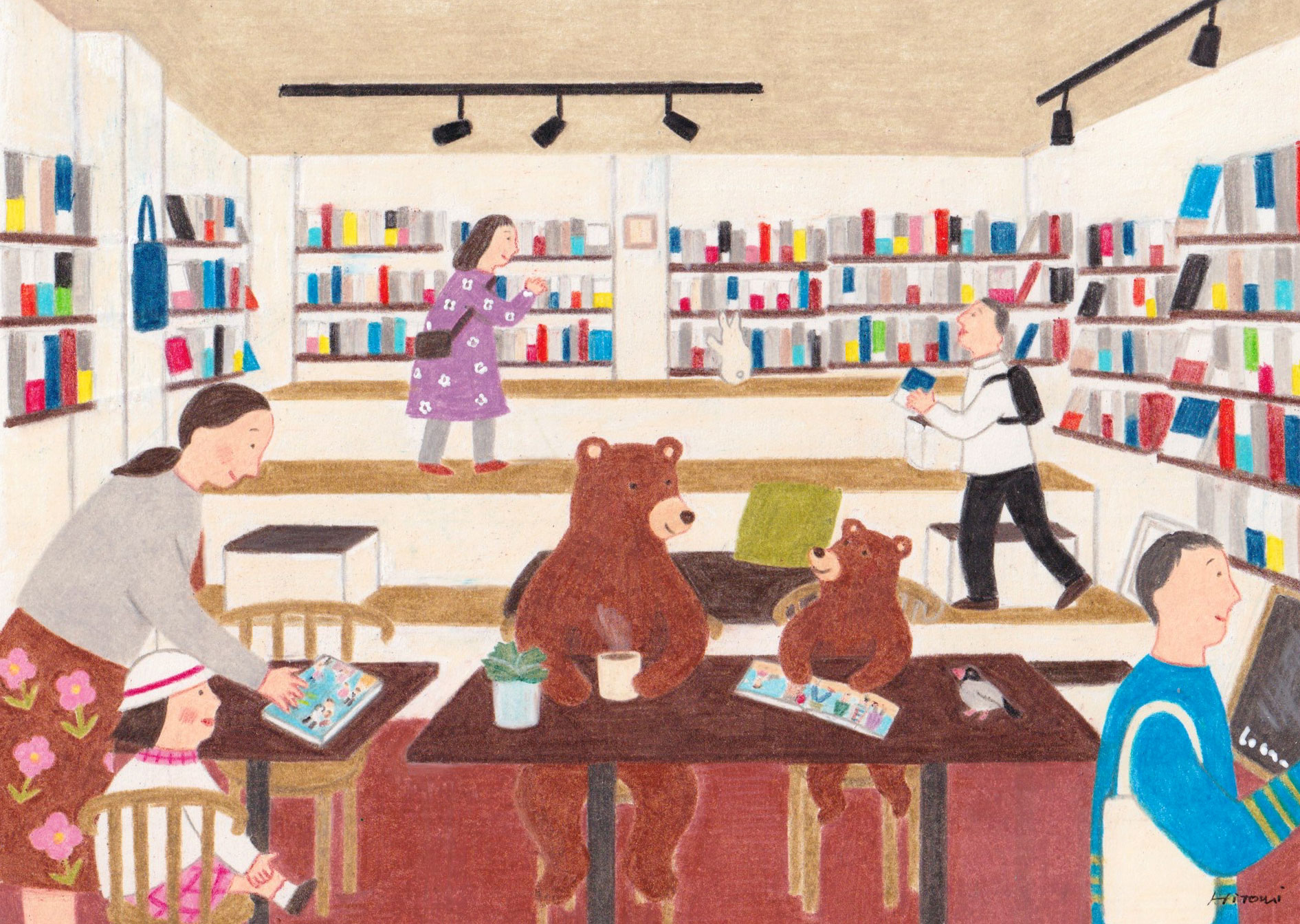 高松の書店・本屋ルヌガンガさまの店内を描いたオリジナルポストカードを制作しました。